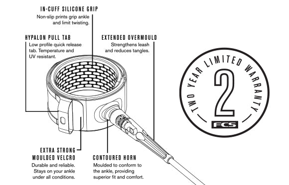Drawing inspiration from the pioneering freedom leash, the FCS Essential Series leash has been refined to embody a lightweight, robust, and ultra-comfortable design, crafted to withstand all surfing conditions.
