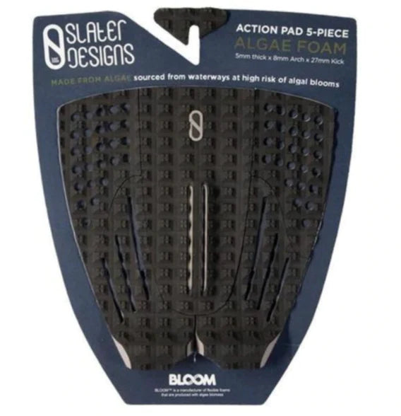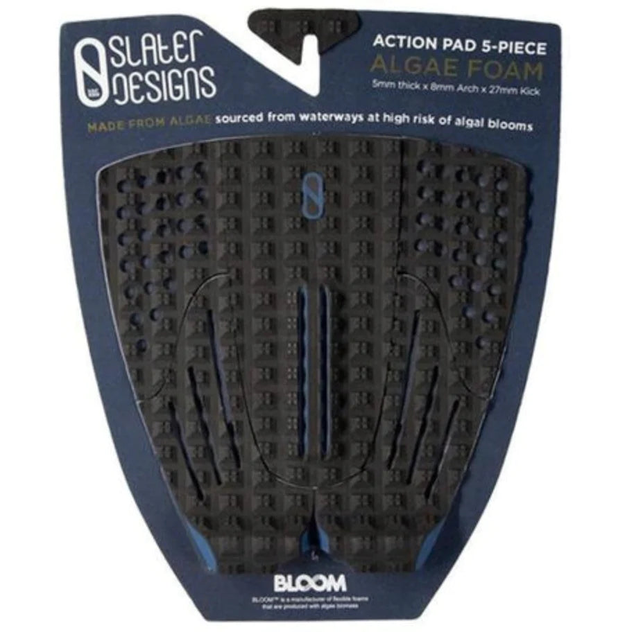 The Action Pad gives you Kelly’s favorite arch, and a picture of his favorite dog, too. You’ll see the elements he designed himself immediately: he chopped a ‘ V ‘ into the tail kick to prevent your leash from catching in the middle. He also slit the arch, too. You’ll feel it quickly, that the arch support is just as wide as the arch support on our 3 and 5 - piece arch pads, but it’s lower. It’s the exact feel that Kelly was chasing when previously cutting trenches into his arch support earlier this year. And the square grooved edges on either side of the parallel slits give you a ‘hooked in’ feeling that other arch supports don’t. The Action Pad also gives you options; the choice to ride either a longer pad or a shorter pad, depending on how you chose to lengthen the the side pieces away from each other, or closer to each other. The Action Pad lastly lets you see what Kelly sees everyday - Action the Dog, an unexpected surprise for your customers who buy the Action Pad. The 5 Piece Action Pad This traction pad provides the necessary grip to push hard through hacks and increase speed and drive through every turn. The cutouts also create a closer connection to the board, giving the rider complete control. 12.65” W x 13.5” H5 Piece padDiamond treadCenter Arch3M adhesive backing